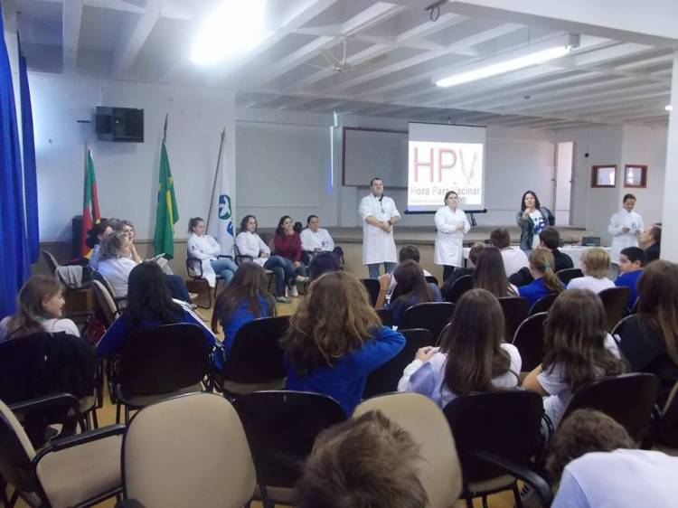 O Curso de Enfermagem da UNIJUÍ desenvolveu atividade na manhã de segunda-feira, 24, no Centro de Educação Básica Francisco de Assis (EFA), ligado à Universidade, dentro das ações do Programa Nacional de Imunização do Ministério da Saúde, que prevê a aplicação da vacina quadrivalente contra o papilomavírus humano (HPV), no Sistema Único de Saúde (SUS), para prevenção do câncer do colo do útero. Sob a coordenação da professora Marli Loro, acadêmicos do sétimo semestre de Enfermagem proferiram uma palestra para as turmas cujos alunos estão na faixa etária dos 11 aos 13 anos de idade, que são o foco da campanha.