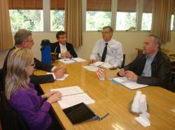 Durante a tarde de terça-feira (15), estiveram reunidos na sala da pró-reitoria do Câmpus em Santa Rosa o Reitor da UNIJUÍ, professor Martinho Luís Kelm, a Vice-reitora Cátia Nehring, o Pró-reitor do Câmpus Santa Rosa Ariosto Sparemberger, o Prefeito Municipal de Santa Rosa Alcides Vicini e o Vice-prefeito Luis Antônio Benvegnú, para discutirem assuntos referentes a implantação do curso de odontologia no Câmpus em Santa Rosa.