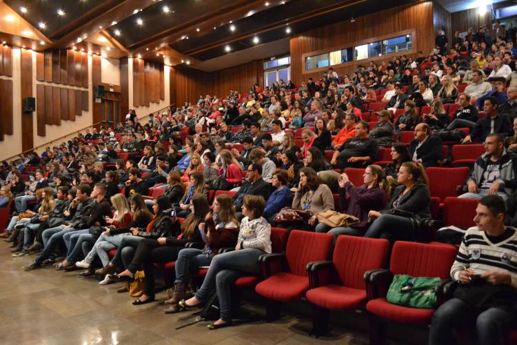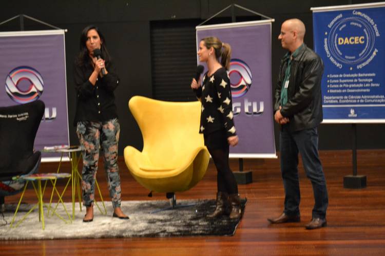 Em clima de descontração, a jornalista bateu um papo com os universitários na sexta feira, 16. Explicou como será feita a cobertura da RBS para a Copa do Mundo no Brasil e respondeu curiosidades quanto à profissão de jornalista esportiva e o Globo Esporte.