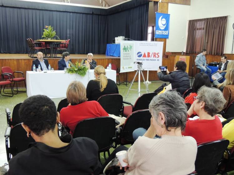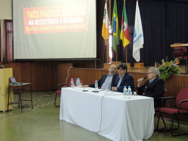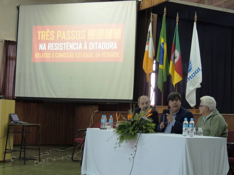 O auditório do Câmpus Três Passos da UNIJUÍ recebeu, no último sábado, uma audiência pública da Comissão Estadual da Verdade (CEV/RS), que teve o objetivo de colher depoimentos de vítimas e testemunhas da repressão política na cidade durante a ditadura militar, iniciada em 1964.