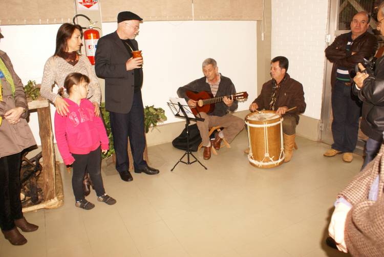 Pensando nesse tema, a exposição Roda de Chimarrão apresenta oito obras confeccionadas pelo artista plástico Paulo Gobo, que retratam o hábito cotidiano de tomar chimarrão, seja ele sozinho, com amigos ou familiares. Esse foi o modo que Paulo demonstrou o seu jeito gaúcho de ser.