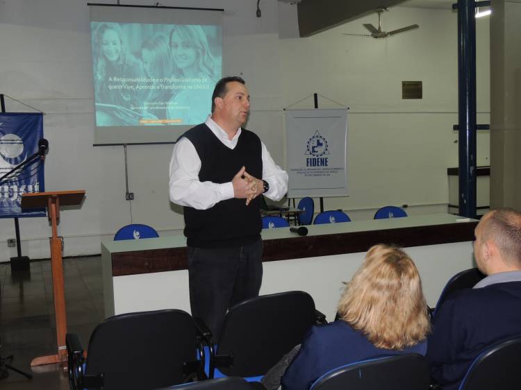 A palestra de abertura teve como tema “A Responsabilidade e o Profissionalismo de quem Vive, Aprende e Transforma na UNIJUÍ”, tema abordado pelo Gerente da Coordenadoria de Marketing, Giancarlo Dari Bottega. Ele abordou o novo cenário corporativo, em que as empresas estão mais inteligentes, e que o capital humano é um dos diferenciais competitivos. Destacou também a importância do trabalho em equipe, abordando a importância do senso comum, de saber compartilhar, planejar, ser humilde e aprender com as diferenças.
