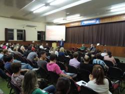 O Salão do Conhecimento estendeu suas atividades, na noite desta sexta-feira, ao Câmpus Três Passos. No auditório do câmpus, foi realizado o painel temático “Extensão universitária e cidadania”, coordenado pelo professor Me. Joaquim Henrique Gatto.