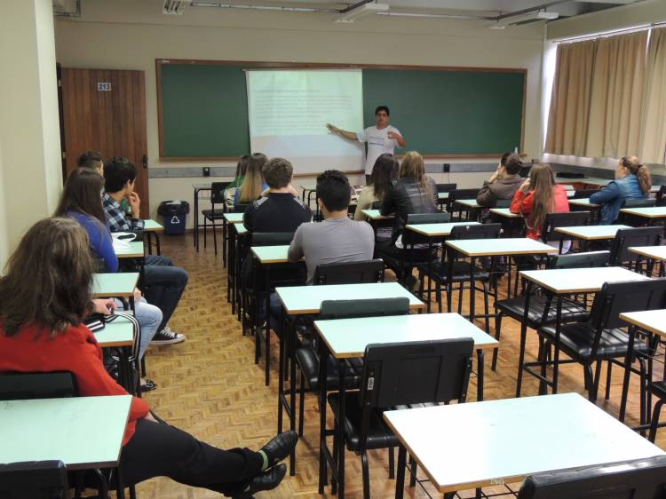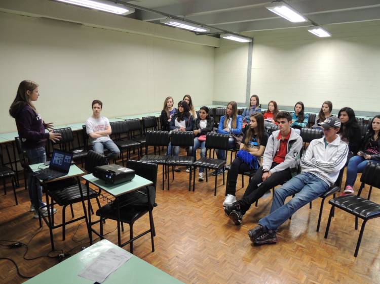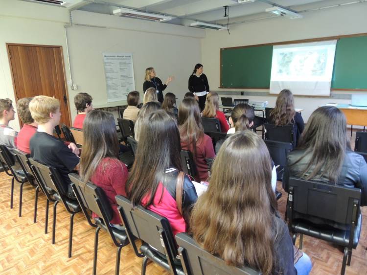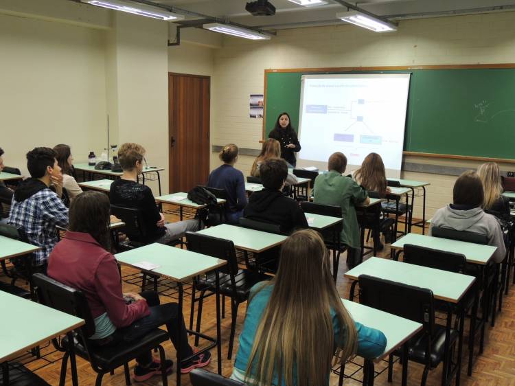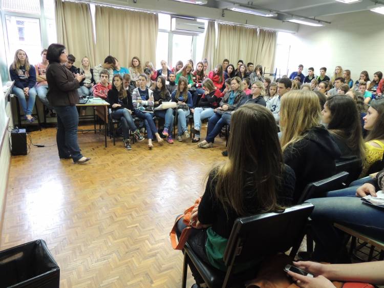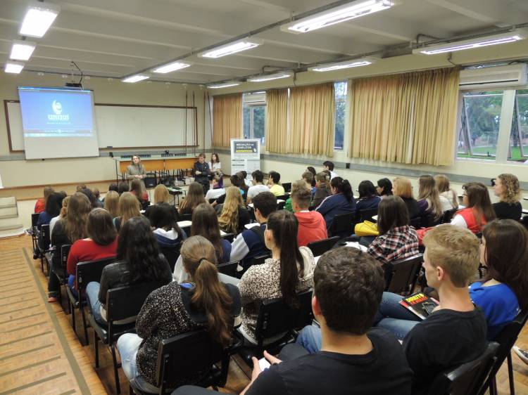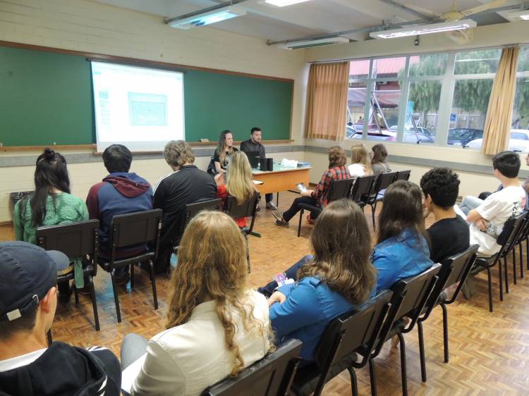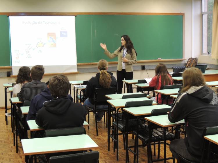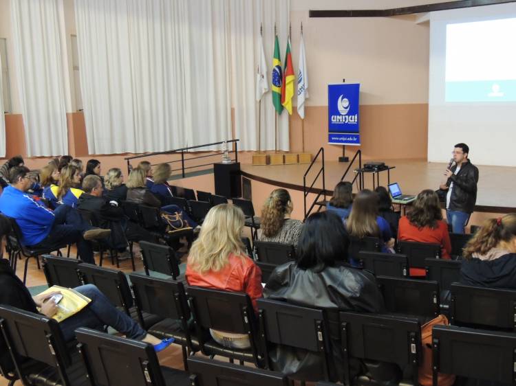 Assim como os estudantes puderam receber informações, os professores também participaram de uma palestra, pela manhã, com o tema “Tecnologias, gerações e o papel da escola”, ministrada pelo professor do Departamento de Ciências Administrativas, Contábeis, Econômicas e da Comunicação (DACEC), Felipe Dorneles.