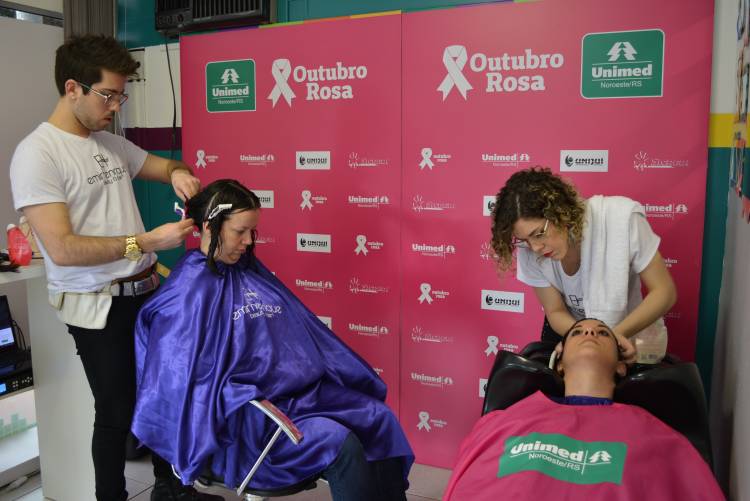 A UNIJUÍ apoiou a ação através da Coordenadoria de Marketing e do curso de Tecnologia em Estética e Cosmética. Além do corte, as doadoras receberam maquiagem.