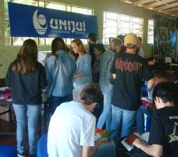 A UNIJUÍ através da Coordenadoria de Marketing juntamente com o curso de Engenharia Elétrica do Câmpus Santa Rosa, participou na quarta-feira, dia 22, da I Feira de Olho no Futuro Albino Fantin, na Escola Estadual de Educação Básica Albino Fantin, no município de Horizontina.