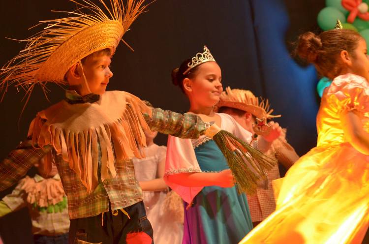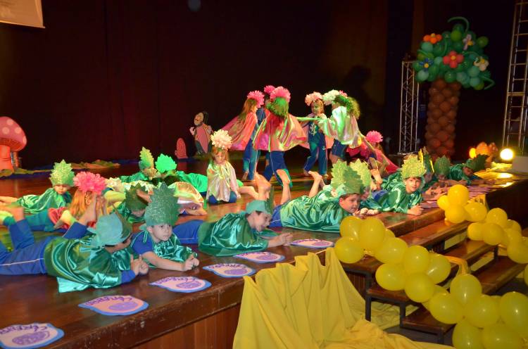 As crianças subiram ao palco para, através da dança, música e teatro, brincar com os personagens e a história do “O Mágico de OZ”, idealizada pelo escritor norte-americano Liman Frank Baum. A história fala sobre a garota Dorothy, que é capturada por um tornado no Kansas e levada a uma terra fantástica de soldados e bailarinas, bruxas - boas e más - espantalhos sem cérebro, homens de lata sem coração e leões covardes. Juntos vão a procura do fabuloso Mágico de OZ para solucionar suas fragilidades.