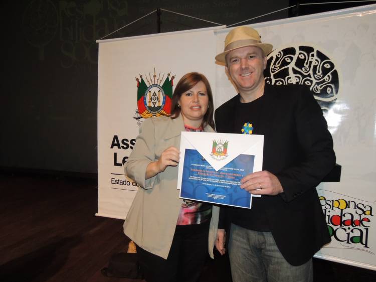 O evento de premiação alusivo à 15ª Edição do Prêmio de Responsabilidade Social e de divulgação do tema norteador vencedor aconteceu na quinta-feira, dia 13, às 19h, na Assembleia Legislativa, em Porto Alegre. O DCJS esteve representado pelo professor Joaquim Gatto, um dos coordenadores do projeto e pela Jornalista da Coordenadoria de Marketing da UNIJUÍ, Marilise Bindé. No evento, a FIDENE/UNIJUÍ também recebeu o certificado de Responsabilidade Social. Desde 2001 a Instituição participa deste prêmio, encaminhando seu Relatório Social para apreciação, contendo a síntese das principais ações sociais desenvolvidas. Em 2013, foram R$ 50.802.041,00 investidos em filantropia, benefícios a alunos e à comunidade.