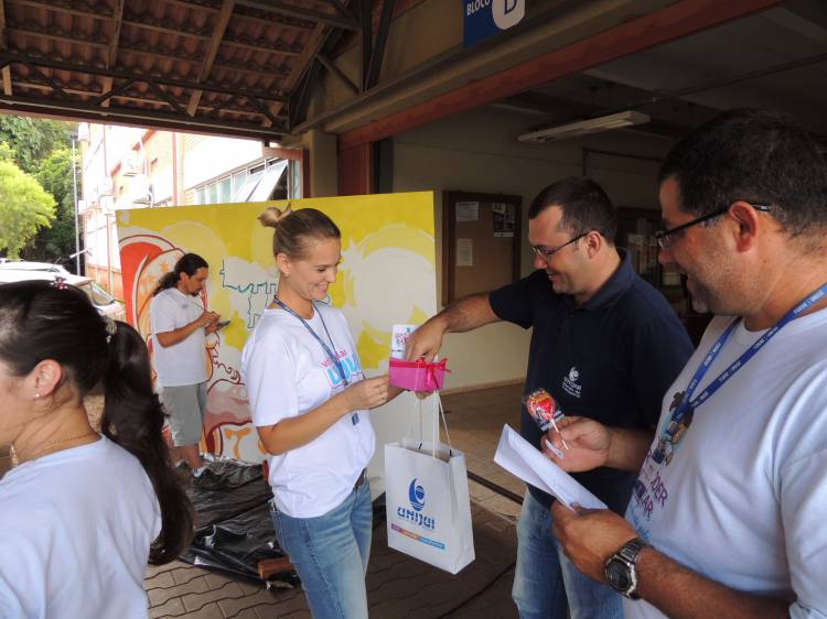 Os colaboradores e estudantes da UNIJUÍ Câmpus Santa Rosa foram surpreendidos no dia de ontem, dia 27, com ações da nova campanha de final de ano da Universidade “Espalhe Amor”. A Coordenadoria de Marketing da instituição está realizando o lançamento da campanha em todos os Câmpus com o intuito de despertar e disseminar bons sentimentos e atitudes positivas.