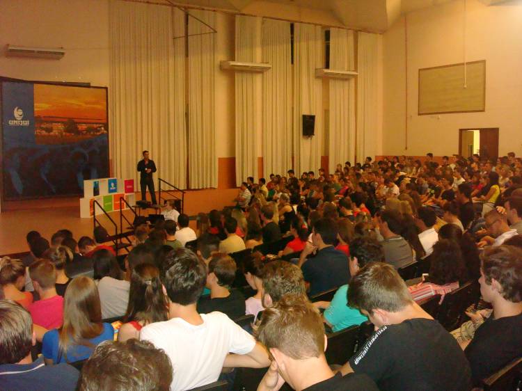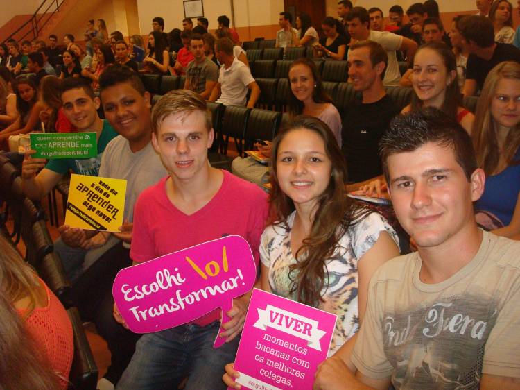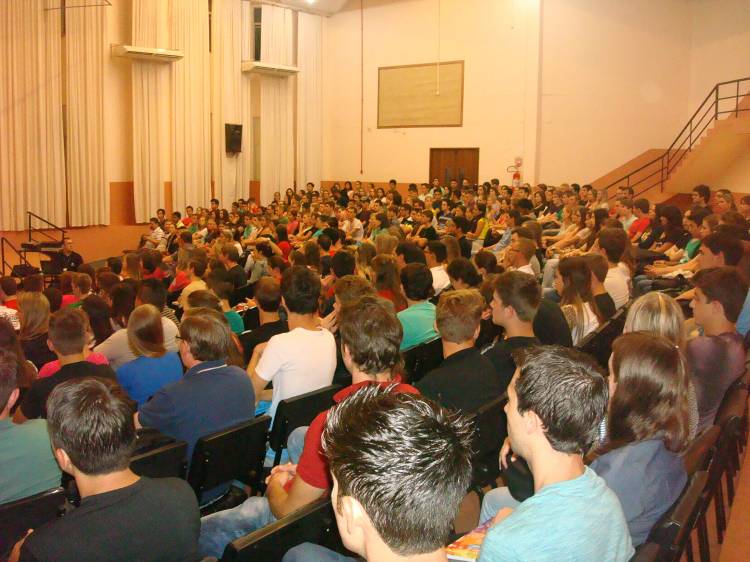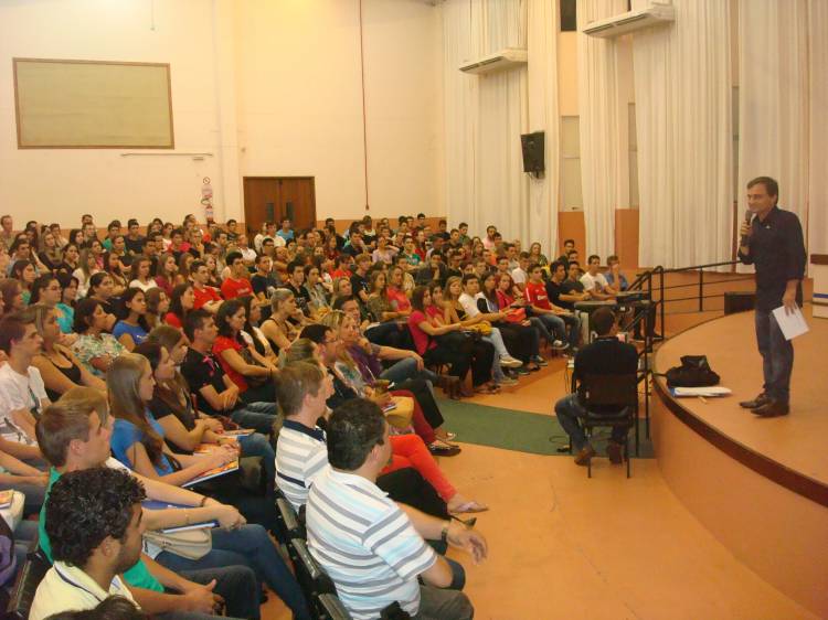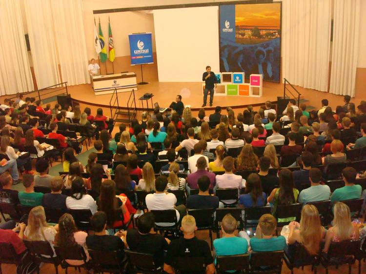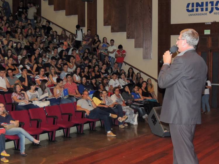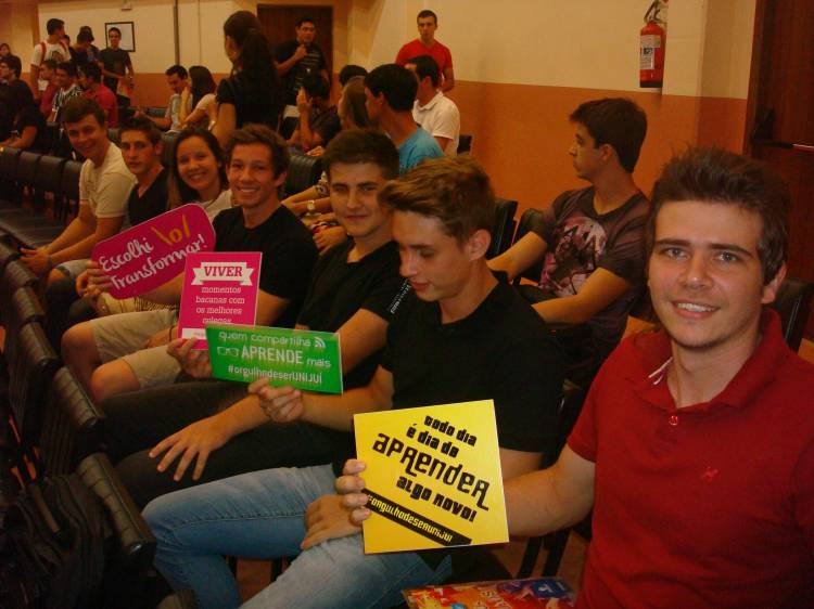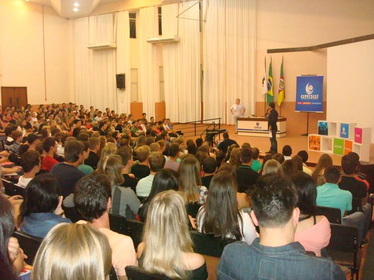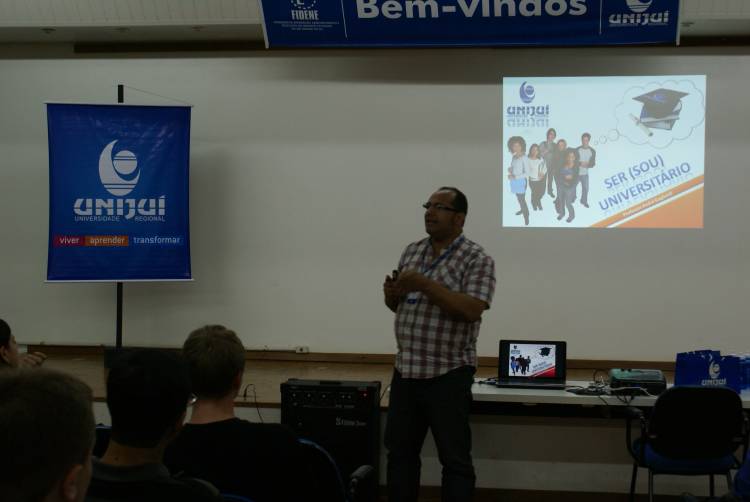 As aulas do primeiro semestre letivo iniciaram na segunda-feira, 23 de fevereiro, e para recepcionar os calouros, a UNIJUÍ organizou uma programação especial desenvolvida em todos os Câmpus. O evento “Sou Universitário” recepcionou os novos alunos da Universidade com a entrega dos cadernos institucionais e uma palestra que teve como temática um olhar geral sobre a vida de universitário, responsabilidades e a progressão acadêmica. Integrantes da Reitoria e das Pró-Reitorias dos Câmpus fizeram suas saudações aos calouros, tendo na sequência da programação a palestra, com a participação de docentes convidados.