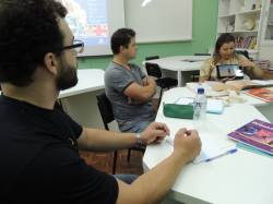 Os professores do curso “Inglês no Câmpus” se reuniram, na tarde do dia 20 de fevereiro, para discutir os desafios do ensino de idiomas no meio universitário e as diferentes ferramentas tecnológicas que possibilitam novas experiências, considerando a plataforma de ensino do curso que alia os tradicionais materiais didáticos com livros digitais, além de incentivar o uso de racional de smartphones, tablets com diversos aplicativos que potencializam as situações de ensino e aprendizagem.