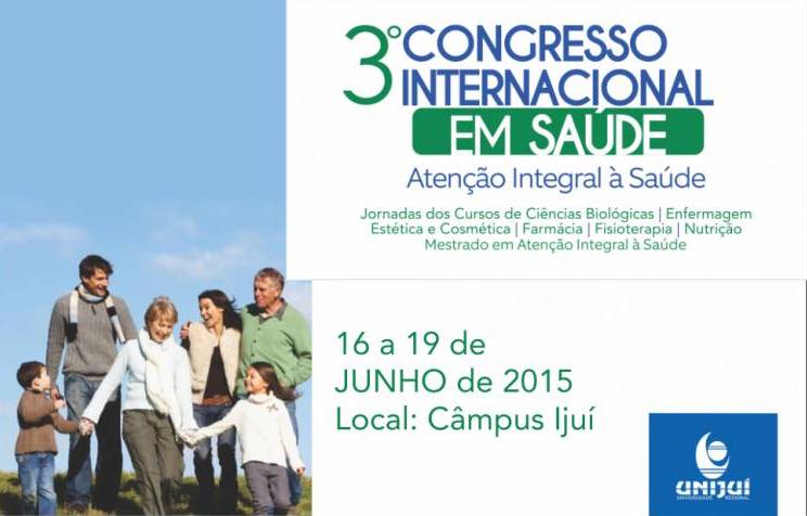 Estão abertas as inscrições para trabalhos de temas livres e participantes do 3º Congresso Internacional de Saúde da UNIJUÍ, até próximo domingo, dia 29. A promoção é do Departamento de Ciências da Vida (DCVida), da UNIJUÍ, e será realizada de 16 a 19 de junho.