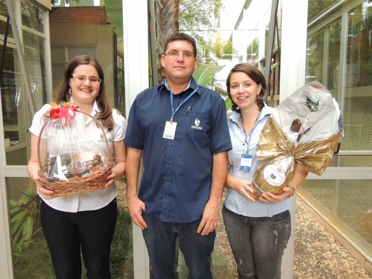 A Associação dos Funcionários da Fidene (AFFI) realizou, na última segunda-feira, a entrega dos prêmios da sua promoção de Páscoa. As ganhadoras Cláudia Cargnelutti Didone, funcionária do Departamento de Estudos Agrários (Deag) e Eliana Fachim, funcionária da Coordenadoria de Marketing receberam uma cesta de páscoa do presidente da Associação, José Vanderlei da Silva.