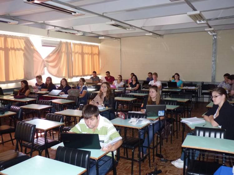 Os estudantes do Curso de Direito da UNIJUÍ estão participando desde a última semana, de aulas práticas do direito, aprendendo como analisar um processo e como proferir uma sentença judicial, através do Projeto Escola de Sentenças ministrada pelo Juiz Adalberto Narciso Hommerding, no Câmpus Santa Rosa.