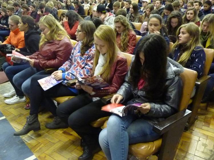 Alunos do terceiro ano do Ensino Médio participaram de três edições do Saca Dúvidas, realizado no Centro Cívico em Santa Rosa.
