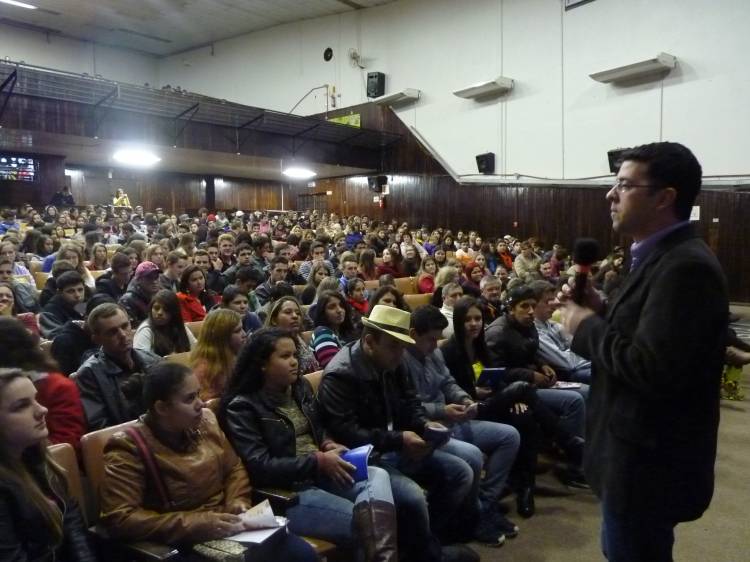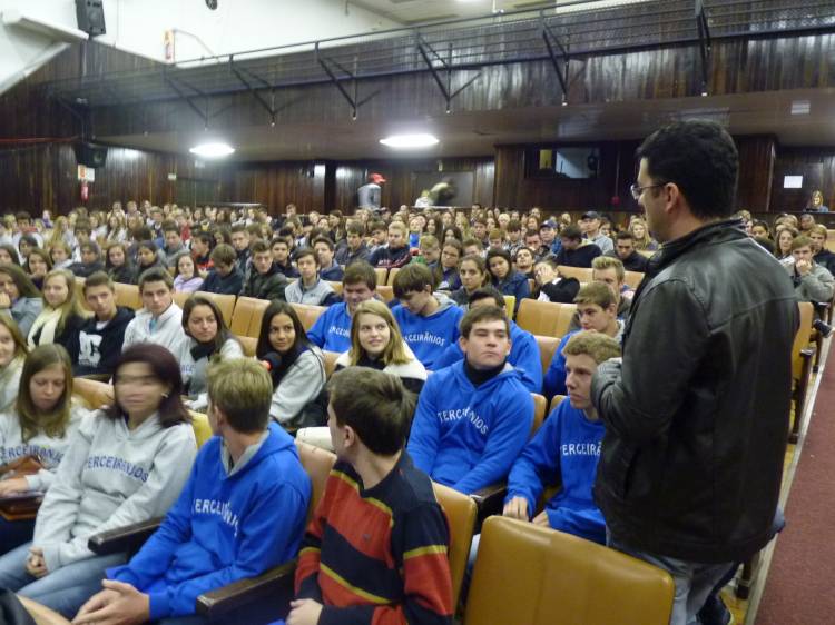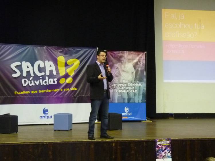 Durante o encontro os estudantes participaram do bate-papo com o Jornalista e professor do curso de Comunicação Social da UNIJUÍ, Felipe Dorneles, onde foram apresentadas algumas dicas de como encarar este período de dúvidas quanto à escolha profissional, assim como a participação e conflitos com pais e professores, e as dificuldades e exigências do mercado de trabalho.