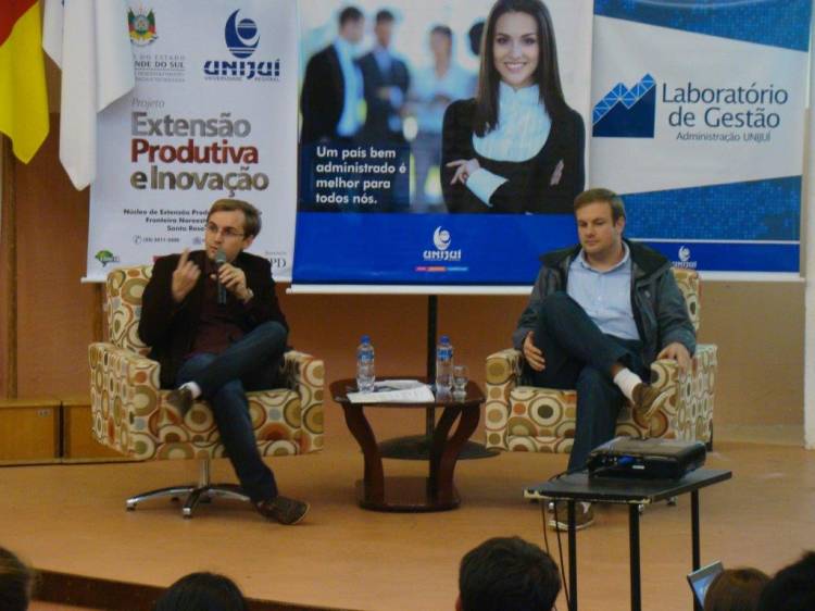 O Curso de Administração da UNIJUÍ Câmpus Santa Rosa realizou na noite de quarta-feira, dia 06, a segunda atividade, de uma série de quatro eventos, denominado Momento Empreendedor. O tema abordado no encontro, “O Empreendedorismo e Inovação no Varejo: Os casos da Hey Peppers e Felice Automóveis”, tratou sobre as trajetórias, experiências e desafios de duas organizações que atuam no setor varejista, sendo que uma delas atua na comercialização de bens e a outra de serviços.