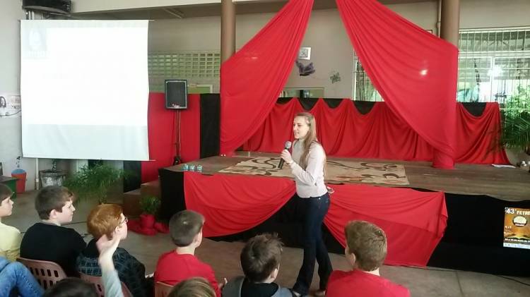 Na mesma manhã, do dia 12, a professora do Departamento de Humanidades e Educação (DHE) da UNIJUÍ, Jací Kieslich, teve um encontro com os alunos das três redes de ensino, quando abordou o tema “Estratégias de Leitura”.