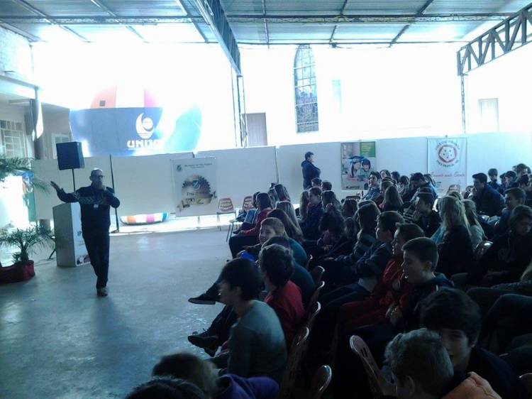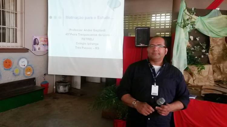 Na quarta-feira, dia 13, o professor do Curso de Comunicação Social da UNIJUÍ, André Gagliardi, abordou dois assuntos aos jovens durante a feira: motivação para o estudo e administração do tempo.