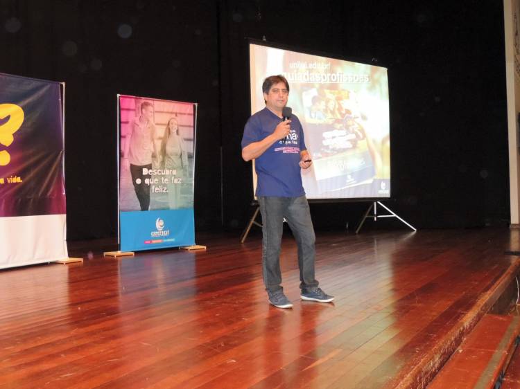 Talento e criatividade são palavras-chave que podem ajudar os futuros vestibulandos na hora de escolher a profissão. E usar estes dois “ingredientes” para identificar, no dia a dia, algum indício de profissão a ser seguida no futuro pode ser uma boa receita para facilitar este momento de escolha profissional para quem está no terceiro ano do ensino médio. Este tem sido o recado deixado aos futuros vestibulandos pelo jornalista e professor do Curso de Comunicação Social da UNIJUÍ, Felipe Dorneles, palestrante do evento Saca Dúvidas.