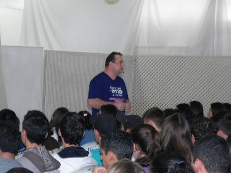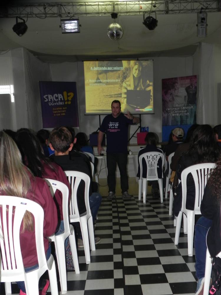 Durante o encontro, os estudantes participaram de um bate-papo com o Gerente de Marketing da UNIJUÍ, Giancarlo Bottega que conversou sobre a escolha profissional, apresentando dicas de como encarar este período de dúvidas.