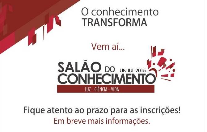 O Salão do Conhecimento 2015, que este ano tem como tema “Luz, Ciência e Vida” está na reta final do período de inscrições. Um dos principais eventos para divulgação da produção em pesquisa e extensão da Unijuí, pois possibilita aos autores – pesquisadores, extensionistas, estudantes de ensino fundamental e médio, de graduação e de pós-graduação, um espaço de diálogo, de socialização e de trocas de saberes e de experiências entre si e com a comunidade externa.