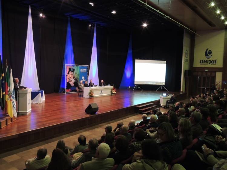 Na sequência, o público pode assistir a um vídeo com depoimento de ex-reitores e diretores da Unijuí.