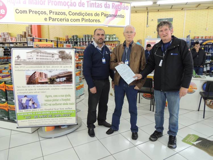 Na tarde da última quarta-feira, a Coordenadoria Patrimonial e Serviços da Universidade, realizou a compra nas Lojas Fricke. Foram adquiridos 15 galões de 18 litros de tinta na cor branca, acrílica semi-brilho, para contribuir na campanha em prol da revitalização da fachada do HCI. Dessa forma, o Hospital vai receber o dobro das tintas, por iniciativa das Lojas Fricke, que vai doar a outra parte.