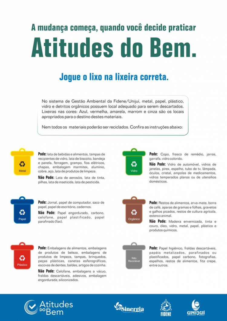 Confira abaixo as instruções da correta separação dos resíduos na UNIJUÍ Câmpus Santa Rosa:
