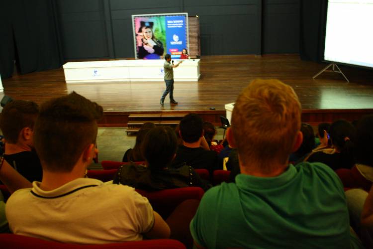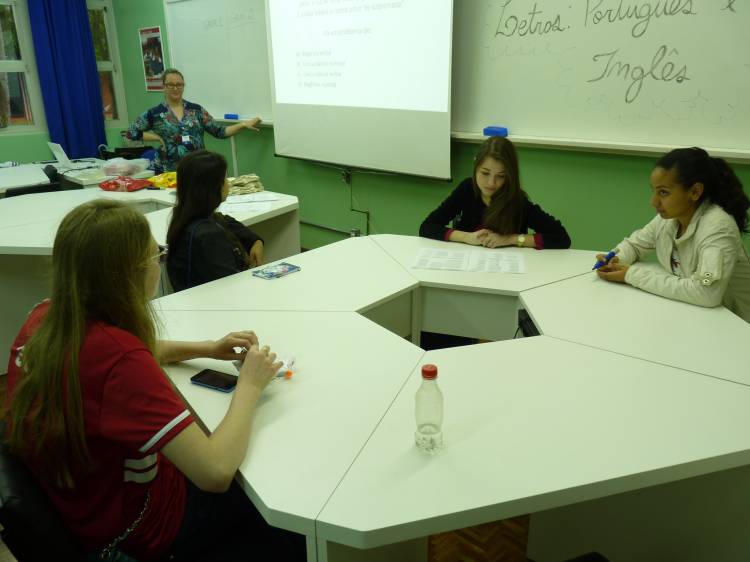No turno da tarde, além de atividades interativas, foi realizado o Aulão de Redação, a cargo do curso de Letras, e palestra sobre Bolsas e Benefícios, com Éder Schuinsekel, da Coordenadoria de Marketing.