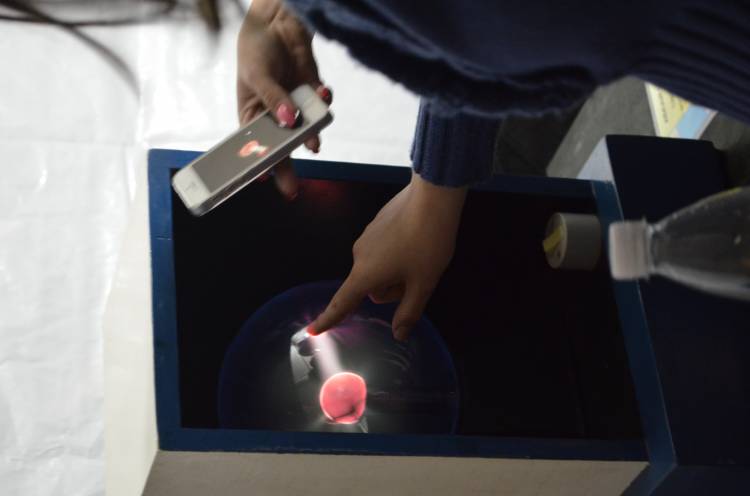 Um holograma também chama atenção do público que tem a oportunidade de assistir uma simulação com base no fenômeno de refração da luz. Muitas pessoas já passaram pela exposição nestes dois dias, uma delas é a acadêmica Letícia Peiter, que nos fala sobre a exposição: “Gostei bastante da exposição, nos traz muitas experiências, conhecimentos e principalmente ideias para nós, estudantes”.