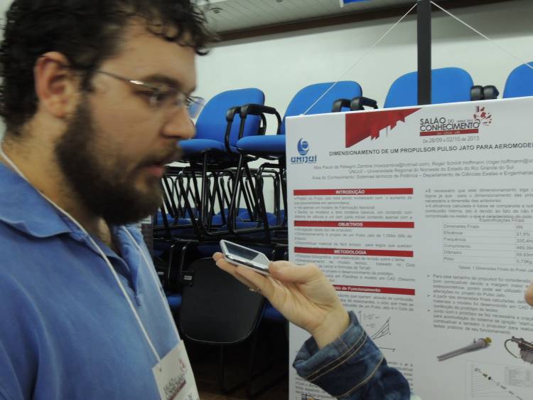 Na área de Engenharia há projetos como o do aluno Max Zambra, que pesquisou o “Dimensionamento de um propulsor a jato para aeromodelo”, que tem como objetivo popularizar, divulgar e disponibilizar esse propulsor para quem quiser produzir o próprio modelo. “Esse propulsor caiu em desuso, mas agora, com a melhora da tecnologia de materiais, é uma opção a mais dentro da parte de aviação. E o diferencial é poder usar combustíveis diferentes”, destaca o estudante de Engenharia Mecânica.