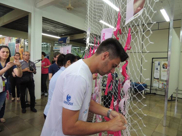 Uma ação diferenciada promovida na manhã desta quarta-feira, no Câmpus Ijuí, marcou oficialmente a adesão da Fidene/Unijuí à campanha do Outubro Rosa 2015.