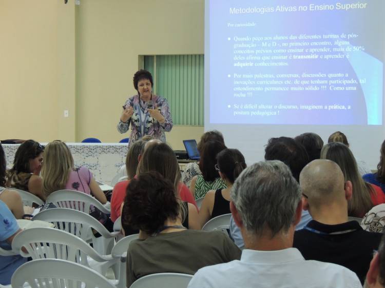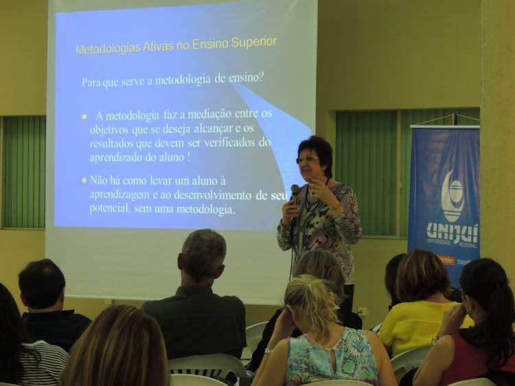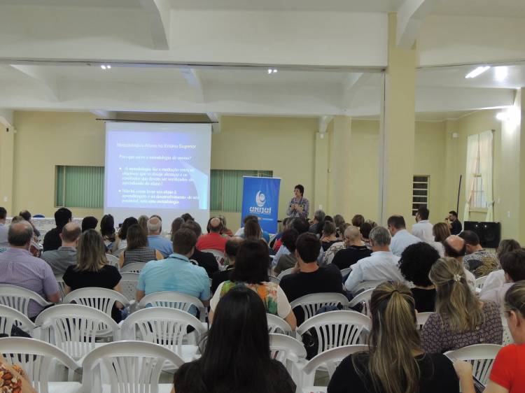 O evento foi marcado por dois momentos: a formação geral para todos os docentes da instituição, por meio de uma palestra com o tema: “Metodologias Ativas no Ensino Superior” ministrada pela professora Drª Neusi Aparecida Navas Berbel e mediada pelo Professor Drº. Gil Guimarães, do Curso de Engenharia Mecânica da Unijuí, o qual vem utilizando metodologias ativas como uma das possibilidades para o ensino e aprendizagens dos estudantes do curso.