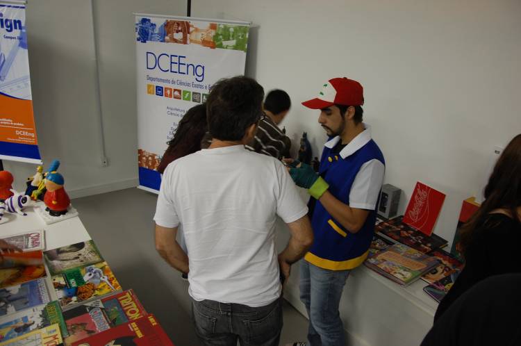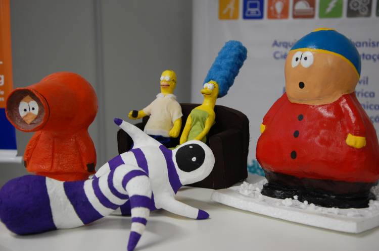 Além disso, foi realizada uma pequena exposição com vários itens do trabalho e coleções pessoais dos participantes, juntamente com bonecos desenvolvidos por alunos do Curso de Design na disciplina de Modelagem Espacial I.