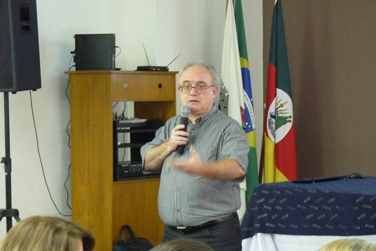 A palestra foi ministrada pelo economista e professor da UNIJUÍ Argemiro Brum.