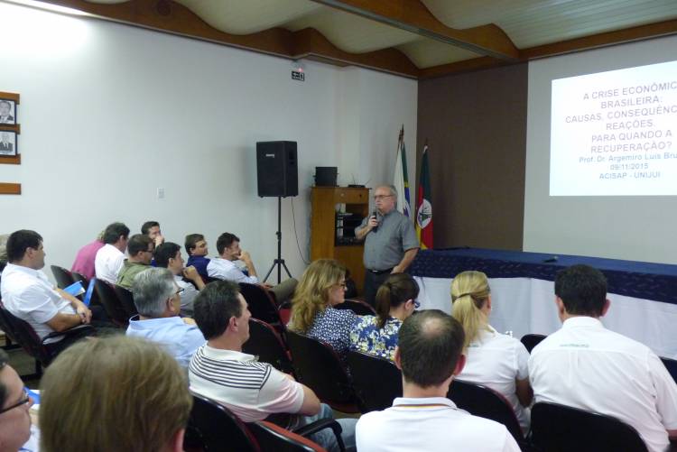 A UNIJUÍ em parceria com a Associação Comercial, Industrial, Serviços e Agropecuária de Santa Rosa (ACISAP) promoveram uma palestra na noite de ontem, dia 09, que abordou o tema: “A crise econômica brasileira, suas causas, consequências e reações. Para quando a recuperação? ”.