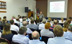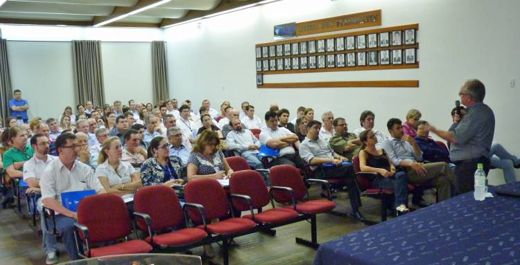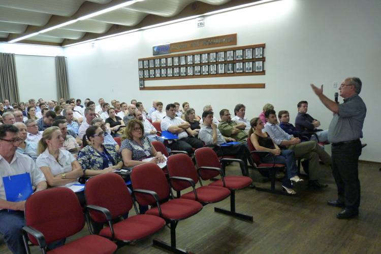 O evento foi realizado no auditório da ACISAP de Santa Rosa, e teve como palestrante o professor do Departamento de Ciências Administrativas, Contábeis, Econômicas e da Comunicação (Dacec) da UNIJUÍ, Dr. Argemiro Brum, professor do Mestrado em Desenvolvimento da Universidade e consultor na área do agronegócio.