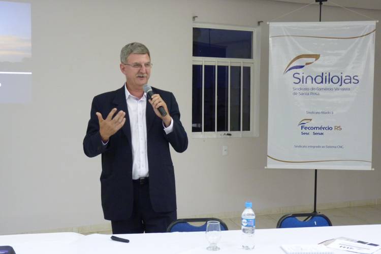 A UNIJUÍ Câmpus Santa Rosa juntamente com o Sindicato do Comércio Varejista de Santa Rosa (Sindilojas), promoveram na noite de segunda-feira, dia 16, no auditório do Sindilojas, palestra com o Reitor da UNIJUÍ, professor Martinho Luís Kelm.