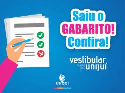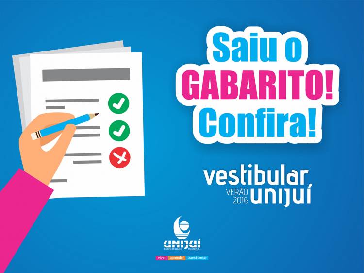 A UNIJUÍ divulgou nesta segunda-feira, às 15h, o Gabarito do Vestibular Verão 2016, cuja prova foi realizada no domingo, 06 de dezembro. A lista dos classificados será divulgada na quarta-feira, 09, às 15h, no Portal da UNIJUÍ.