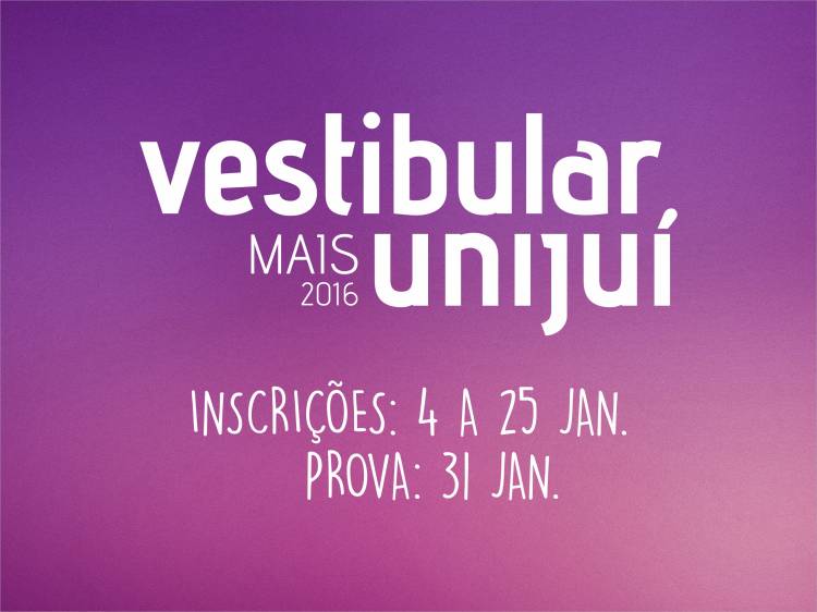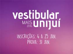 Uma nova oportunidade para os estudantes que desejam ingressar em um dos cursos superiores ofertados pela Instituição. A prova do Vestibular Mais 2016 será realizada no dia 31 de janeiro, domingo, nos Campi Ijuí, Panambi, Santa Rosa e Três Passos e Polo Ijuí. As inscrições estarão abertas no período de 04 a 25 de janeiro, no Portal.
