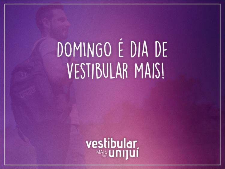 O Vestibular Mais 2016 oferta 610 vagas dentre cursos presenciais e a distância. Para os cursos presenciais, a prova será de redação e 40 questões objetivas, envolvendo as quatro áreas de conhecimento (Humanas, Linguagens, Naturais e Matemática) das 8h30 às 12h30. Para os cursos EaD, a prova será de redação sendo o horário das 8h30 às 11h30. A prova será realizada nos Câmpus Ijuí, Panambi, Santa Rosa e Três Passos e Polo Ijuí. É necessário que o vestibulando, no dia da prova, traga documento de identificação com foto e caneta.