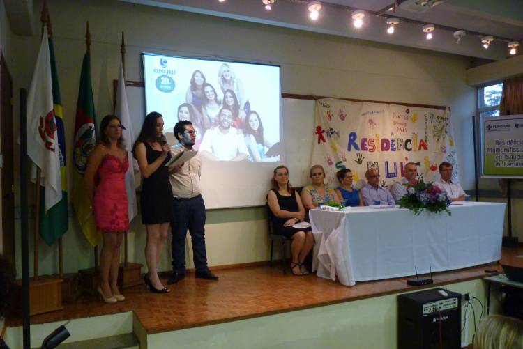 O Programa de Residência Multiprofissional em Saúde da Família teve o encerramento das atividades da 5ª turma na noite de sexta-feira, dia 29, através da solenidade de formatura dos residentes, no mini auditório da UNIJUÍ Câmpus Santa Rosa. O programa é financiado pelo Ministério da Saúde e conta com a parceria da UNIJUÍ juntamente com a Fundação Municipal de Saúde de Santa Rosa (FUMSSAR).