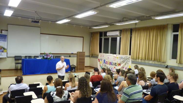 Na oportunidade foi realizada uma aula inaugural com o Doutor e professor Luís Antônio Benvegnú, juntamente com a médica especialista Fabiana Breitenbach, que abordaram durante o encontro a temática: Atenção Primária em Saúde e a Integração Ensino Serviço.