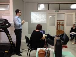 Na manhã de quinta-feira, 17, o médico cardiologista Jeferson Pannebecker, Especialista em Clínica Médica (HUSM-UFSM), Cardiologia (IC-FUC e SBC) e Terapia Intensiva (AMIB) proferiu palestra para a equipe técnica da Unidade de Reabilitação Física (UNIR) e também para alunos dos Cursos de Fisioterapia e Enfermagem da UNIJUÍ.