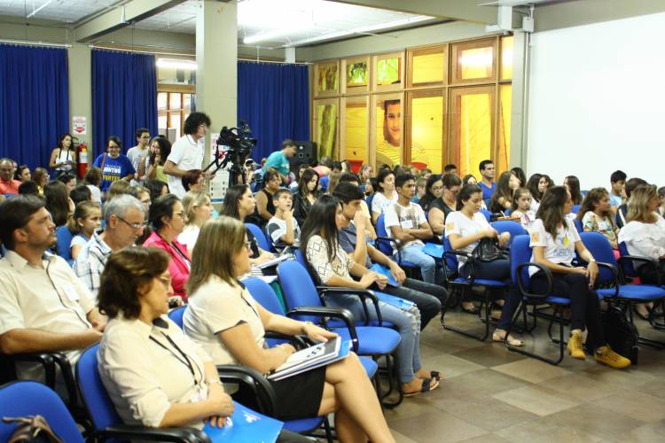Lotando o Salão Azul da Biblioteca Mário Osório Marques da Unijuí, os alunos e professores das escolas públicas de Ijuí e região participaram da abertura das Oficinas de Formação do Projeto de Extensão Rádio, Tecnologias e Empreendedorismo na Escolas na tarde desta quarta-feira, 13.