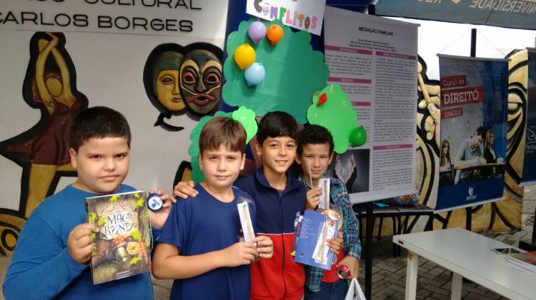 O curso de Direito também está com atividades permanentes na feira, através dos projetos Cidadania para todos e Mediação de Conflitos. Confira algumas imagens: