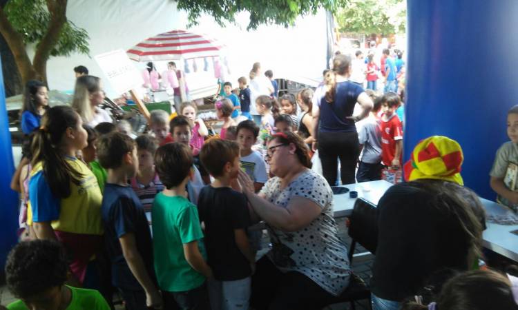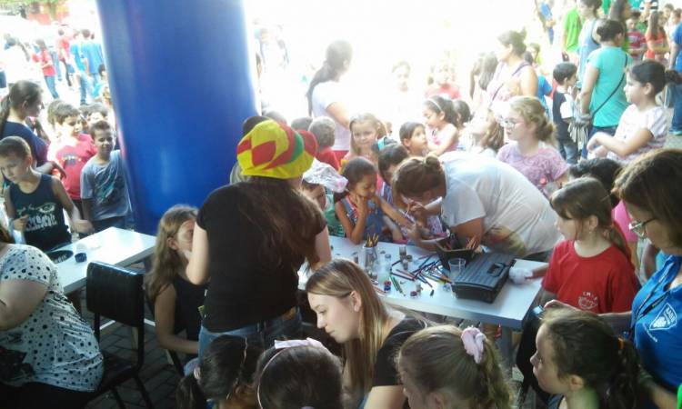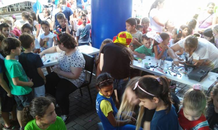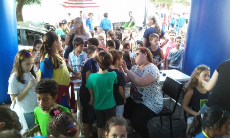 O curso de Pedagogia está participando da feira através de contação de histórias e pintura de rosto para as crianças que passeiam pela feira. Confira tudo que está rolando nas imagens: