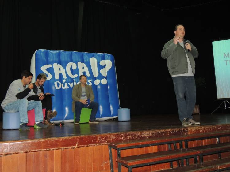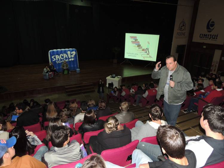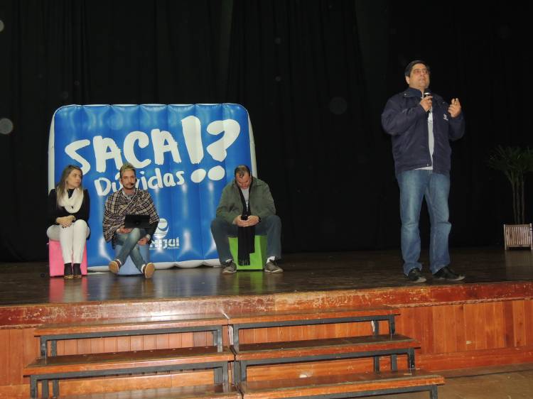 O Saca Dúvidas é um evento voltado aos futuros vestibulandos, com o objetivo de esclarecer dúvidas a respeito dessa fase de escolha profissional. Este ano, foram palestrantes o administrador e consultor de carreiras Giancarlo Bottega, que falou sobre as tendências do mercado de trabalho; o administrador Éder Schuinsekel, da equipe de Relacionamento da Unijuí, que falou sobre Programas de Bolsas e Benefícios; e os psicólogos Paula Borelli e Élvis Mognhon, falando sobre Vocação e Escolha Profissional. Após as palestras, os participantes puderam fazer suas perguntas pelo microfone ou pelo whatsapp.