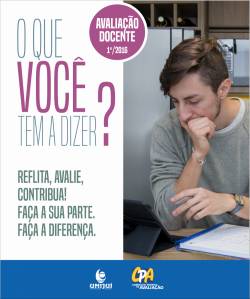 “Acho a avaliação docente de grande valia, afinal nos dá a oportunidade de opinar sobre as matérias e dizer o que realmente acontece em sala de aula. É um momento em que o aluno ganha voz, auxiliando muito na mudança das aulas e principalmente na forma do professor dar a aula”. Larissa Berwanger, 5º semestre de Jornalismo.